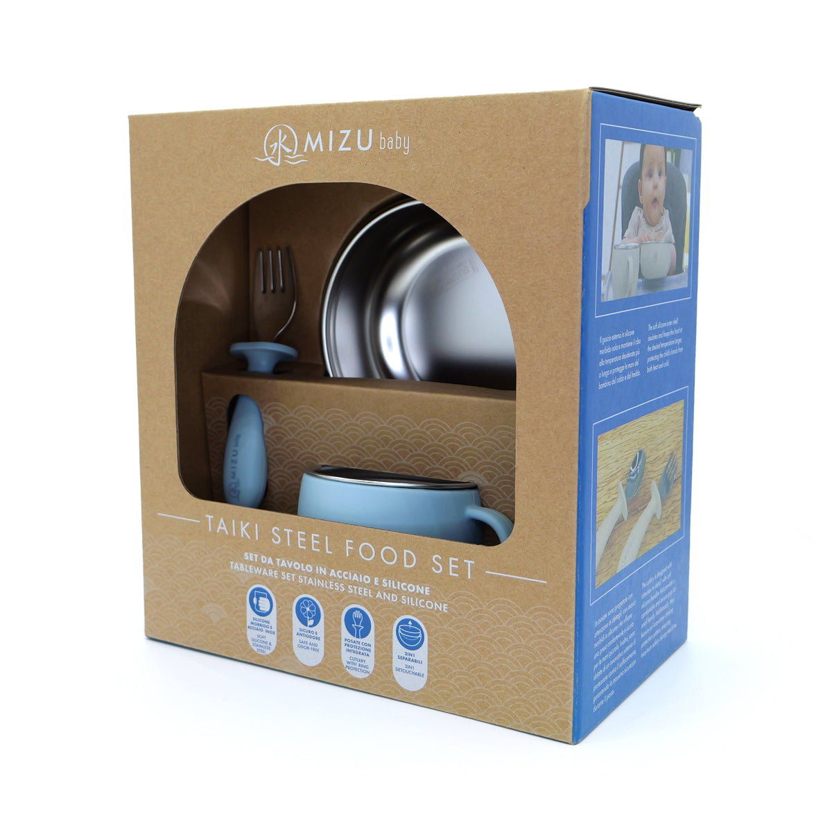 MIZU Baby Taiki Steel – Food Set in Acciaio e Silicone per i primi pasti in autonomia