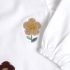 Maglietta girocollo con rouche, manica lunga, in jersey elasticizzato. Con ricamo fiore punto spugna.