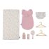 Ha tutto quello che serve per il cambio: materassino, sacco nanna, pannolino, spazzola, crema e lozione.