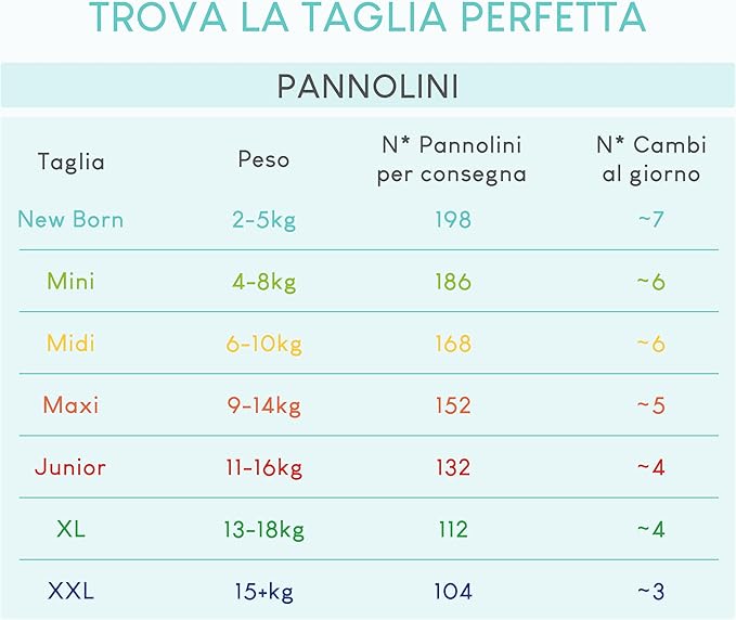 La confezione da 198 pannolini ti garantisce una riserva ideale per il primo periodo, quando i cambi sono frequenti e non hai voglia di restare senza.